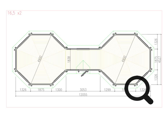 Vnitřní plocha: 2 x 16,5 m² kabina + 5,78 m² chodba