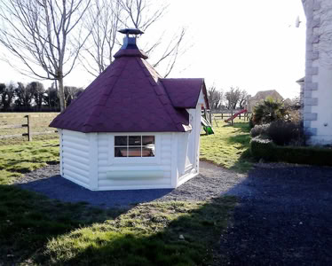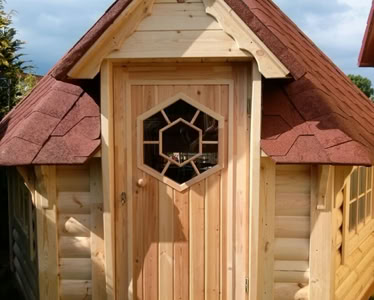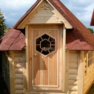 Střecha: 18 mm borové obložení zvenčí a 14 mm vnitřní borové obložení se 100 mm izolací z kamenné vlny mezi, pokryto tmavě hnědou bitumenovou krytinou membrány