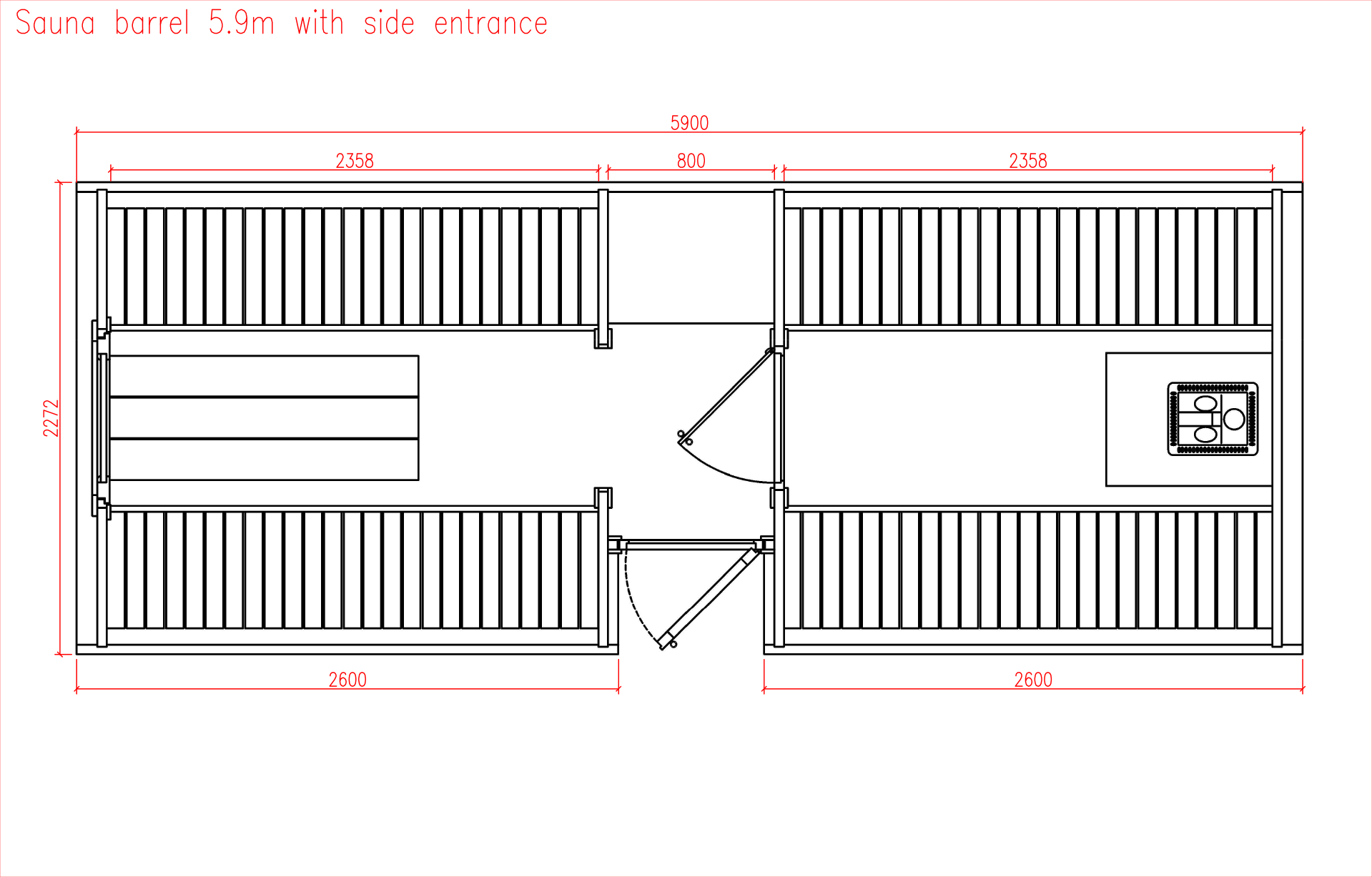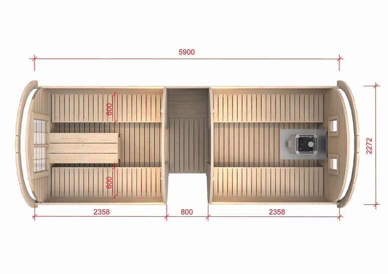 SUDOVÁ SAUNA - 5,9 m Ø 2,27 m s bočním vchodem