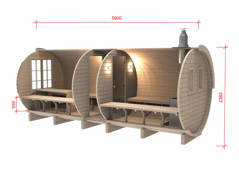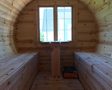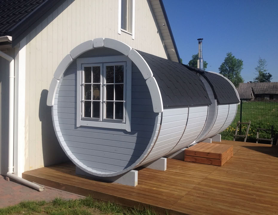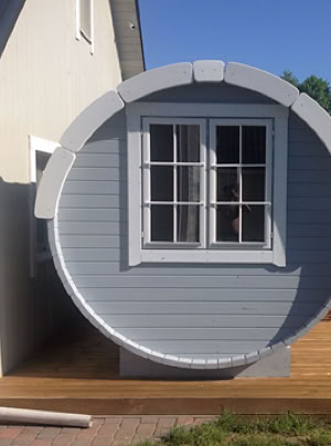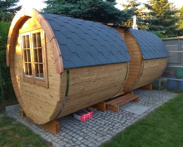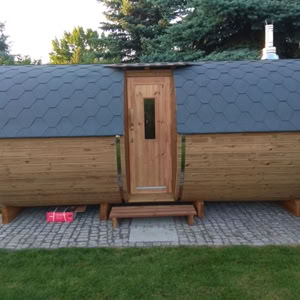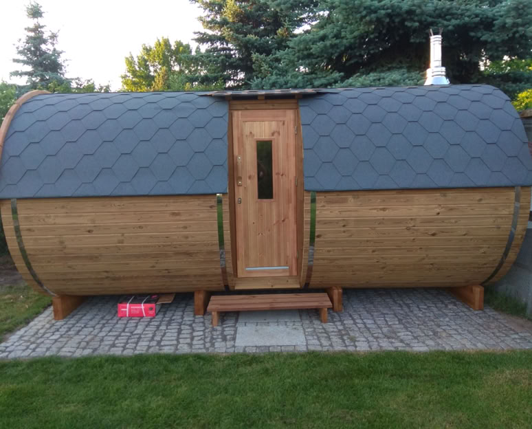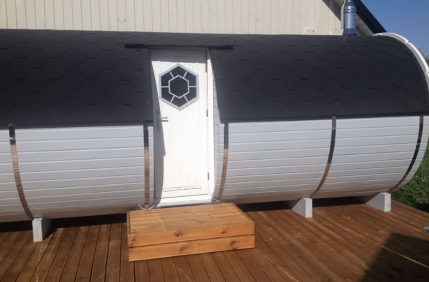 Menu / Sudové sauny / Sudová sauna 5,9 m Ø 2,27 m s bočním vchodem