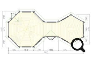 Menu / Grilovací koty / Dvojitá grilovací kota 9,2 m² + 16,5 m² s 1,8 m chodbou