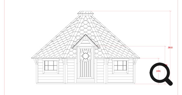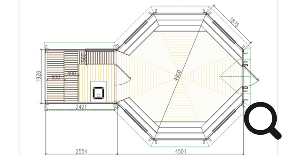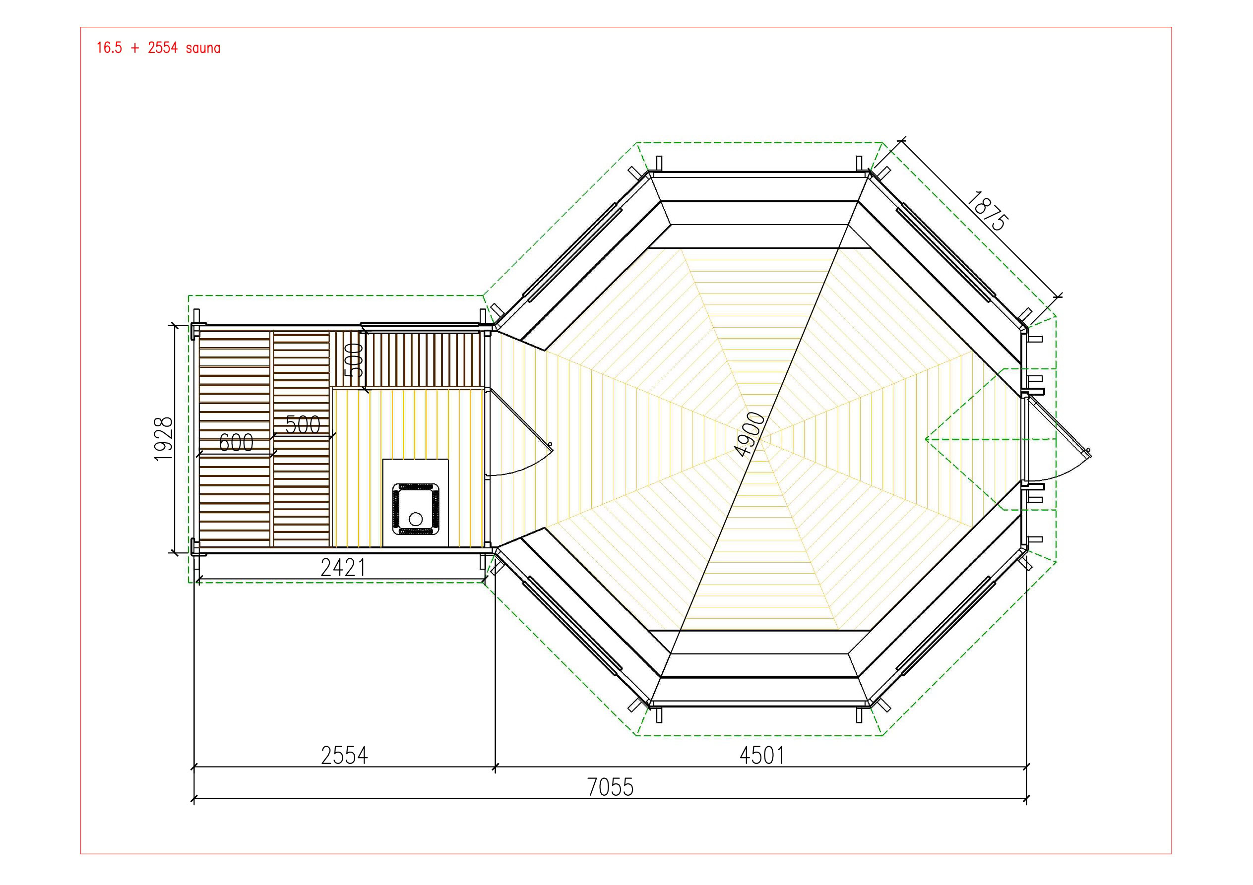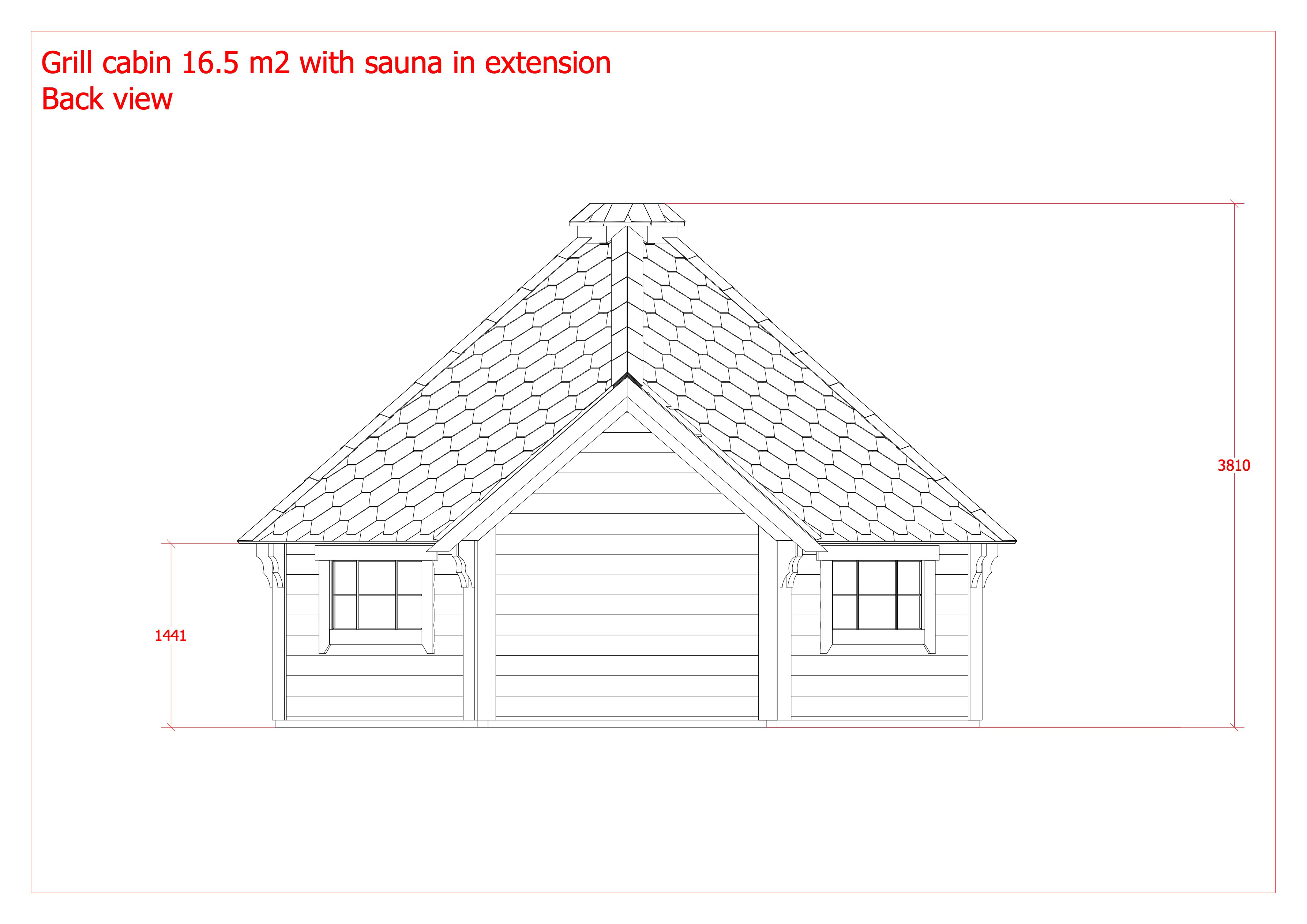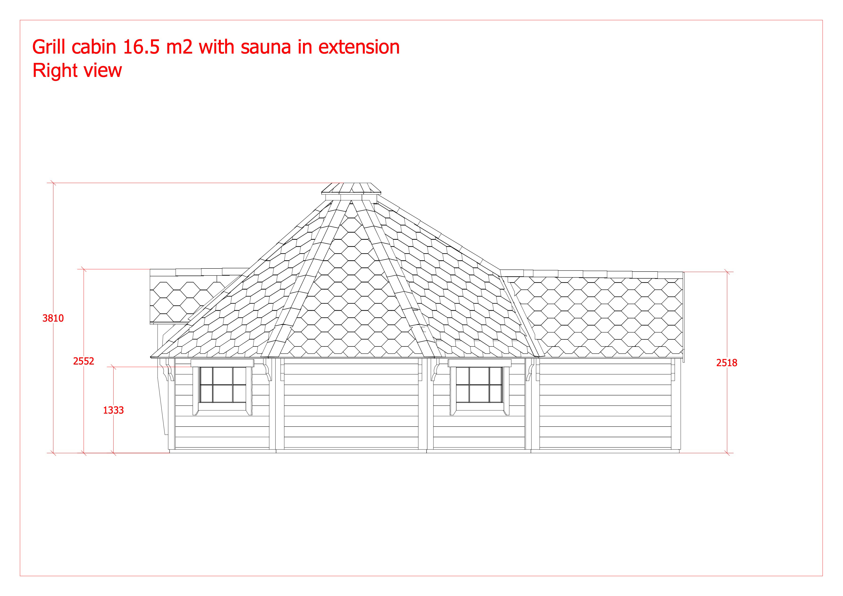 Menu / Saunové Koty / Grilovací kota 16,5 m² se saunou v prodloužení o 2,5 m