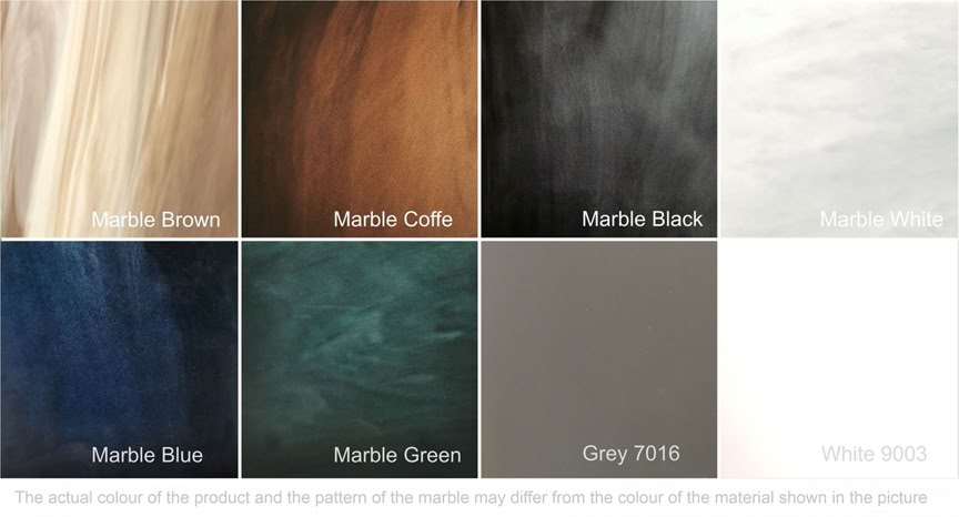 Dostupné barvy: Bílá, šedá, 6 různých barev mramoru