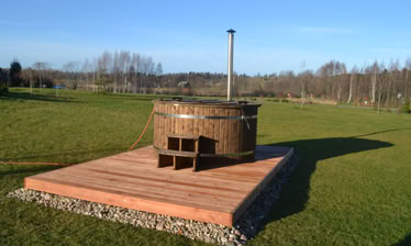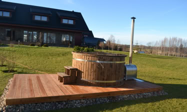 Minimálně jednou ročně ošetřete vnější povrch koupacího sudu lněným olejem nebo jiným impregnátorem dřeva, abyste prodloužili životnost vany. Vnější část koupacího sudu může být také natřena.