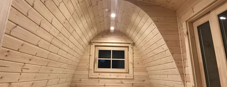 Obložení borovým dřevem zevnitř i zvenku: