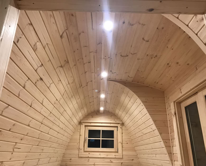 Obložení borovým dřevem zevnitř i zvenku: