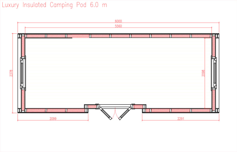 LUXUSNÍ IZOLOVANÝ KEMPING BOX - 2,4 x 6,0 m s bočním vchodem