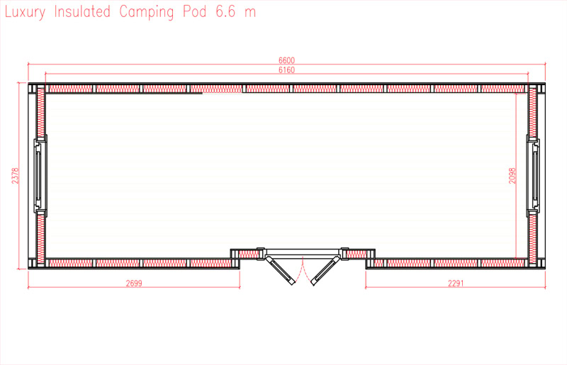 LUXUSNÍ IZOLOVANÝ KEMPING BOX - 2,4 x 6,6 m s bočním vchodem