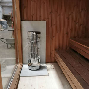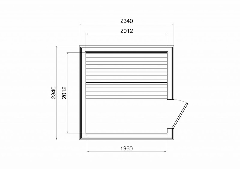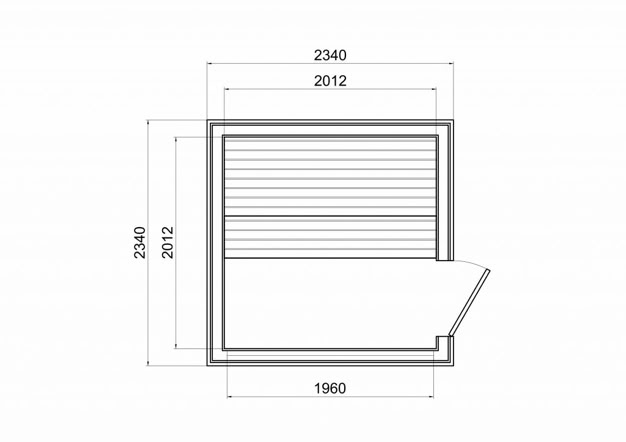 Saunové okno: Dvojité tvrzené, tónované sklo: 1940 x 1940 mm