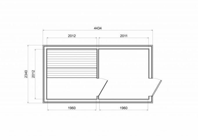 Saunové okno: Dvojité tvrzené, tónované sklo: 1940 x 1940 mm