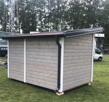 Střecha: 10 mm OSB zvenku a 14 mm uvnitř borovicové obložení se 100 mm izolací kamenných stěn mezi nimi, pokryté tmavě hnědými bitumenovými střešními membránami