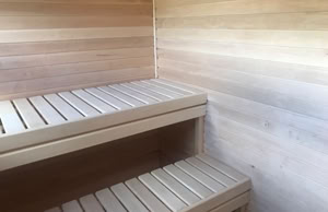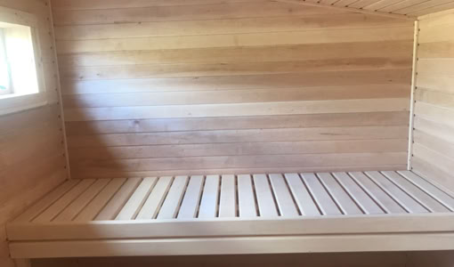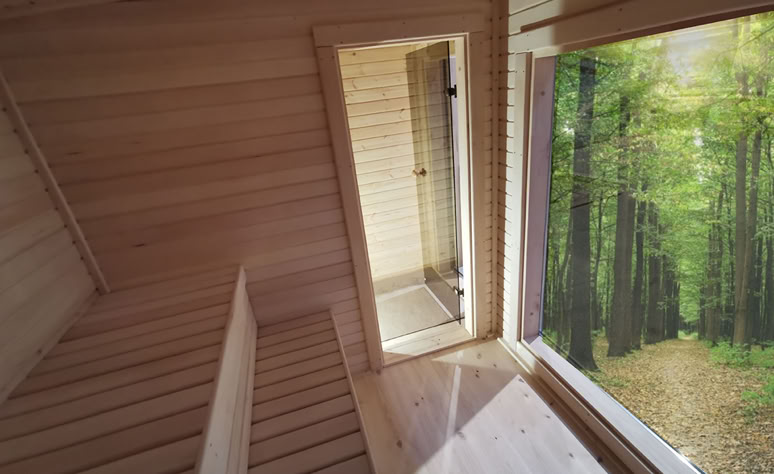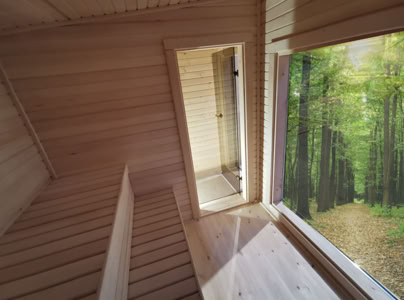 Okno sauny: Dvojité zasklené, vnitřní sklo sauny je tvrzené: 420 x 1220 mm