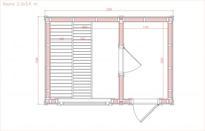 MODERNÍ SAUNA - 2,3 x 3,4 m