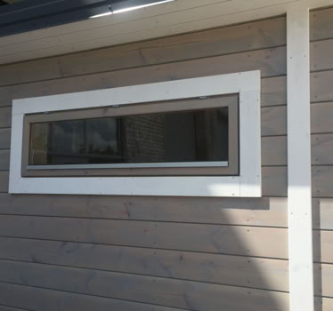 Stěna: Obložení borovice zvenčí: 18 mm; Obložení černá olše/lípa zevnitř: 14 mm; Tloušťka izolované stěny: 142 mm
