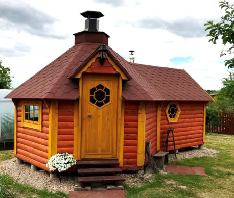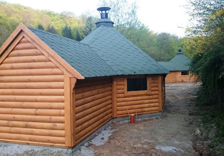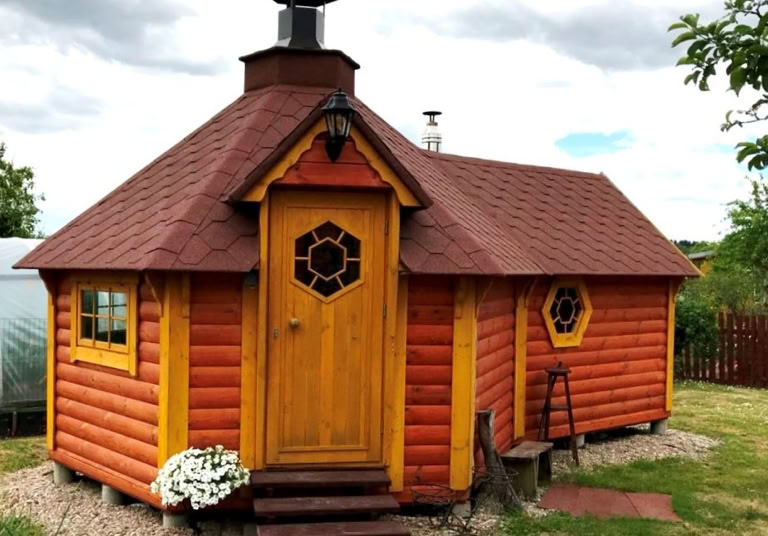 Saunové koty vyrábíme z kvalitních sušených kulatých borových desek s tloušťkou stěny 45 mm, zateplenou střechou 81 mm a podlahou tloušťky 18 mm.