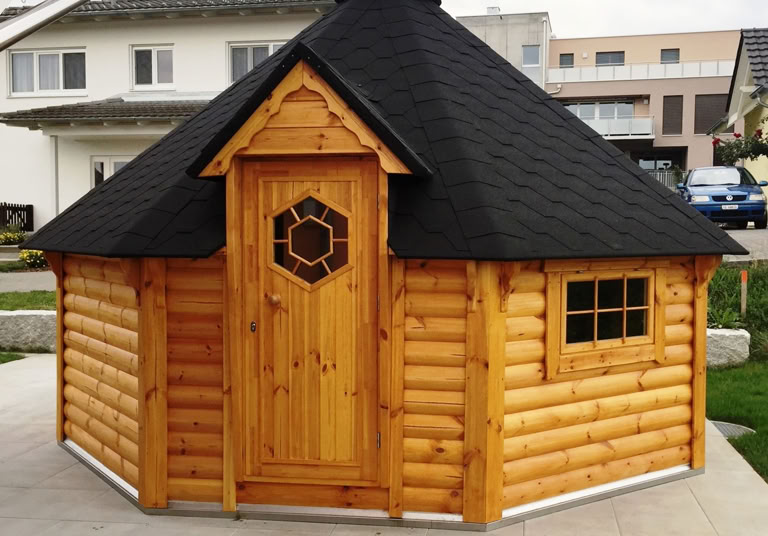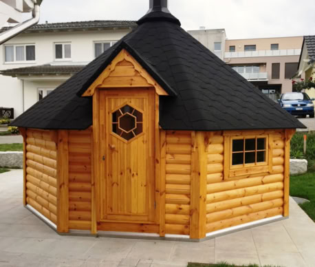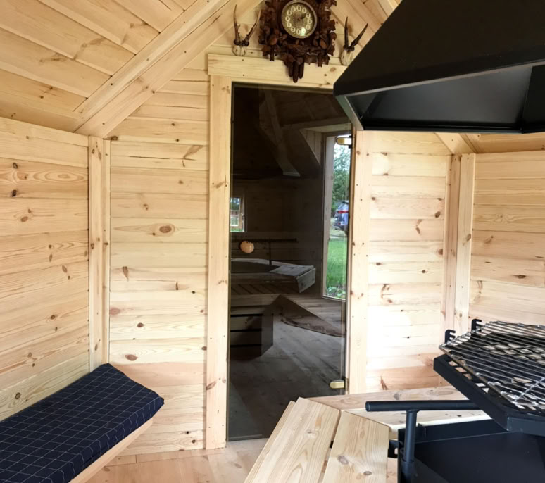 Pokud je zvolena sauna-gril kota, standardní sada dále obsahuje: Standardní BBQ SET s osazeným stolem a výsuvným komínem.