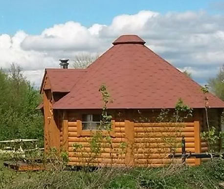 Pro zastřešení saunových kot jsou použity bitumenové šindele finského výrobce Icopal SBS modifikované a vyztužené sklolaminátem 120 g/m².