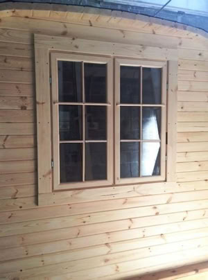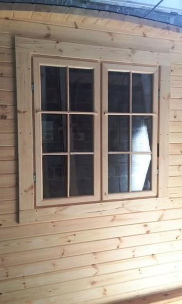 Střecha: 18 mm borové obložení zvenčí a 14 mm vnitřní borové obložení se 100 mm izolací z kamenné vlny mezi, pokryto tmavě hnědou bitumenovou krytinou membrány