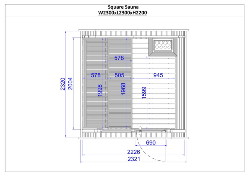 Eco Moderní sauna obsahuje 12 stěnových panelů: