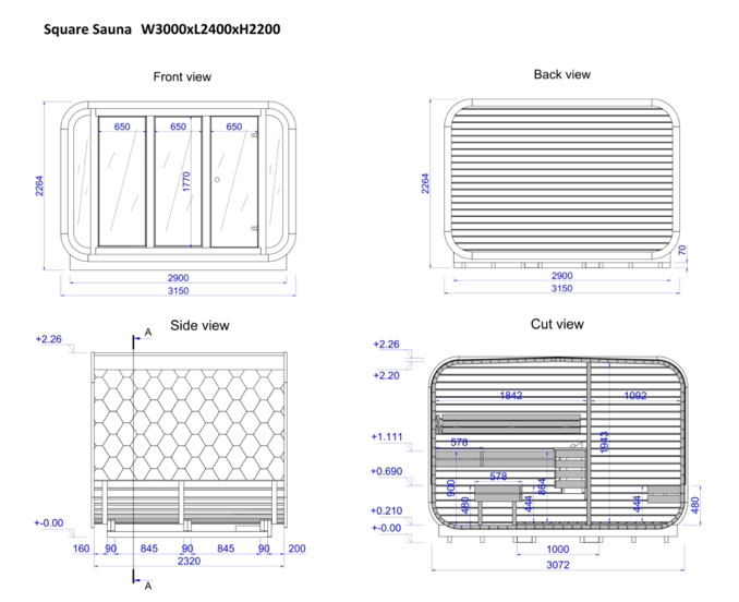 SQUARE SAUNA COMFORT - 3,0 x 2,3 m