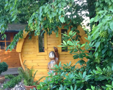 Střecha: 18 mm borové obložení zvenčí a 14 mm vnitřní borové obložení se 100 mm izolací z kamenné vlny mezi, pokryto tmavě hnědou bitumenovou krytinou membrány