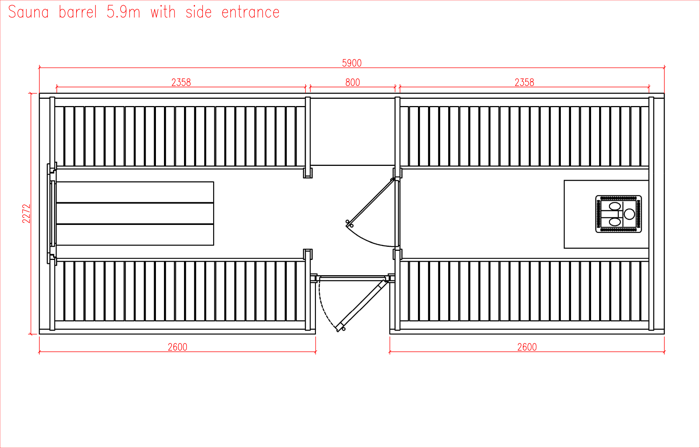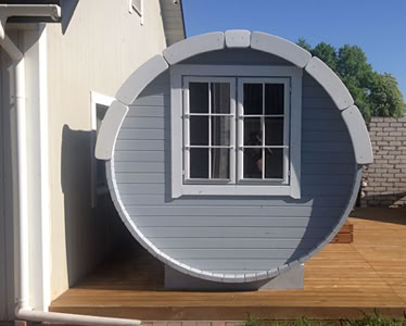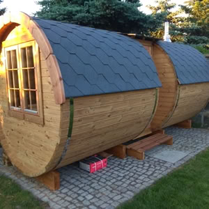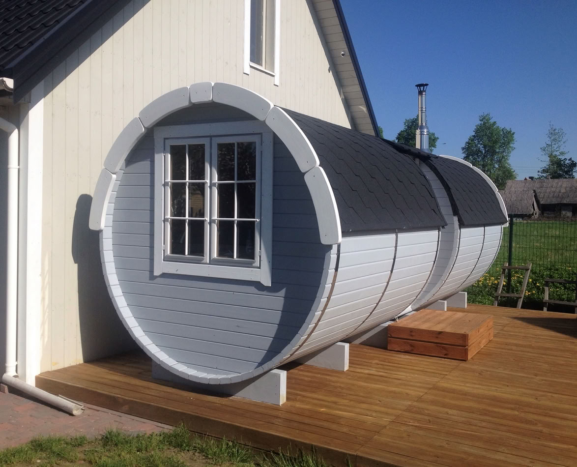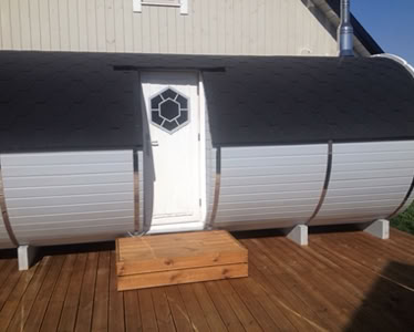 Menu / Sudové sauny / Sudová sauna 5,9 m Ø 2,27 m s bočním vchodem